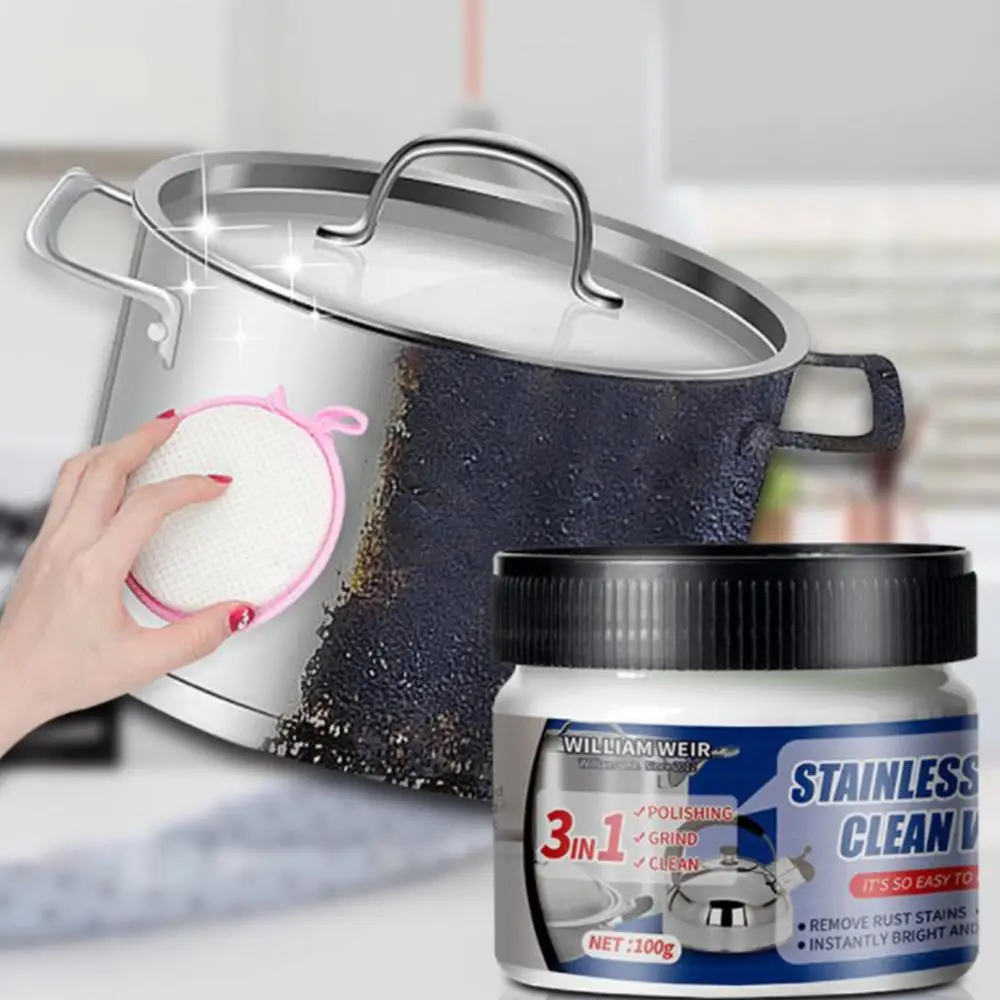 REMOVE STAINS: Our stainless steel cleaning cream is suitable for all kinds of stainless steel and kitchen metal pans, dirt on the oven, scale on tiles and aluminum windows